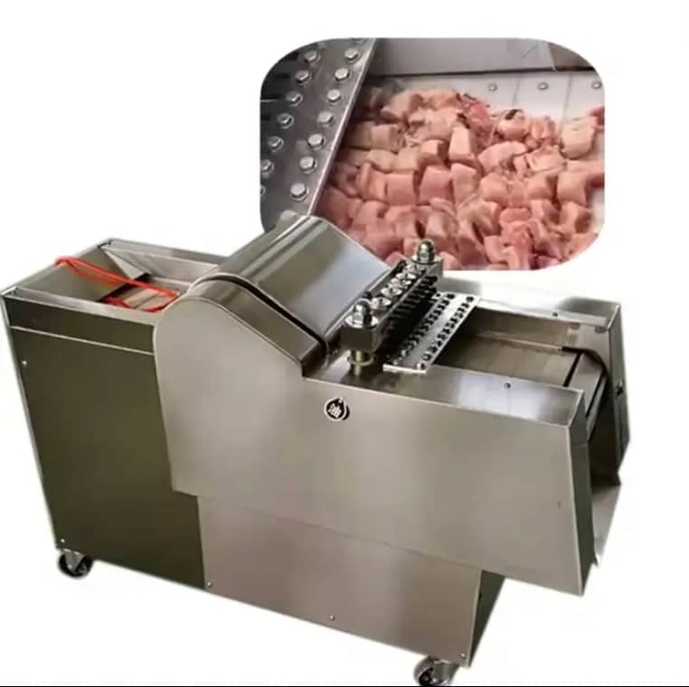 Ipari húskockázó gépünk a professzionális húsfeldolgozás elengedhetetlen eszköze. Nagy teljesítményének és masszív felépítésének köszönhetően rövid idő alatt képes feldolgozni akár több száz kilogramm húst, legyen szó friss vagy fagyasztott csirkéről, marháról, sertésről vagy más húsfélékről. Az egyenletes vágás biztosítja a mindig azonos méretű húskockákat, ami elengedhetetlen a minőségi ételek elkészítéséhez és a feldolgozási folyamat hatékonyságához.