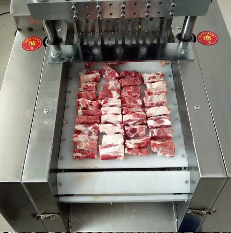 A gép robusztus, rozsdamentes acél kivitele hosszú élettartamot garantál, ugyanakkor könnyen tisztítható és higiénikusan üzemeltethető. Az állítható vágási méret (20–50 mm) lehetővé teszi, hogy az igényeknek megfelelően szabályozzuk a húskockák nagyságát, így minden recepthez és feldolgozási célhoz ideális választás.
